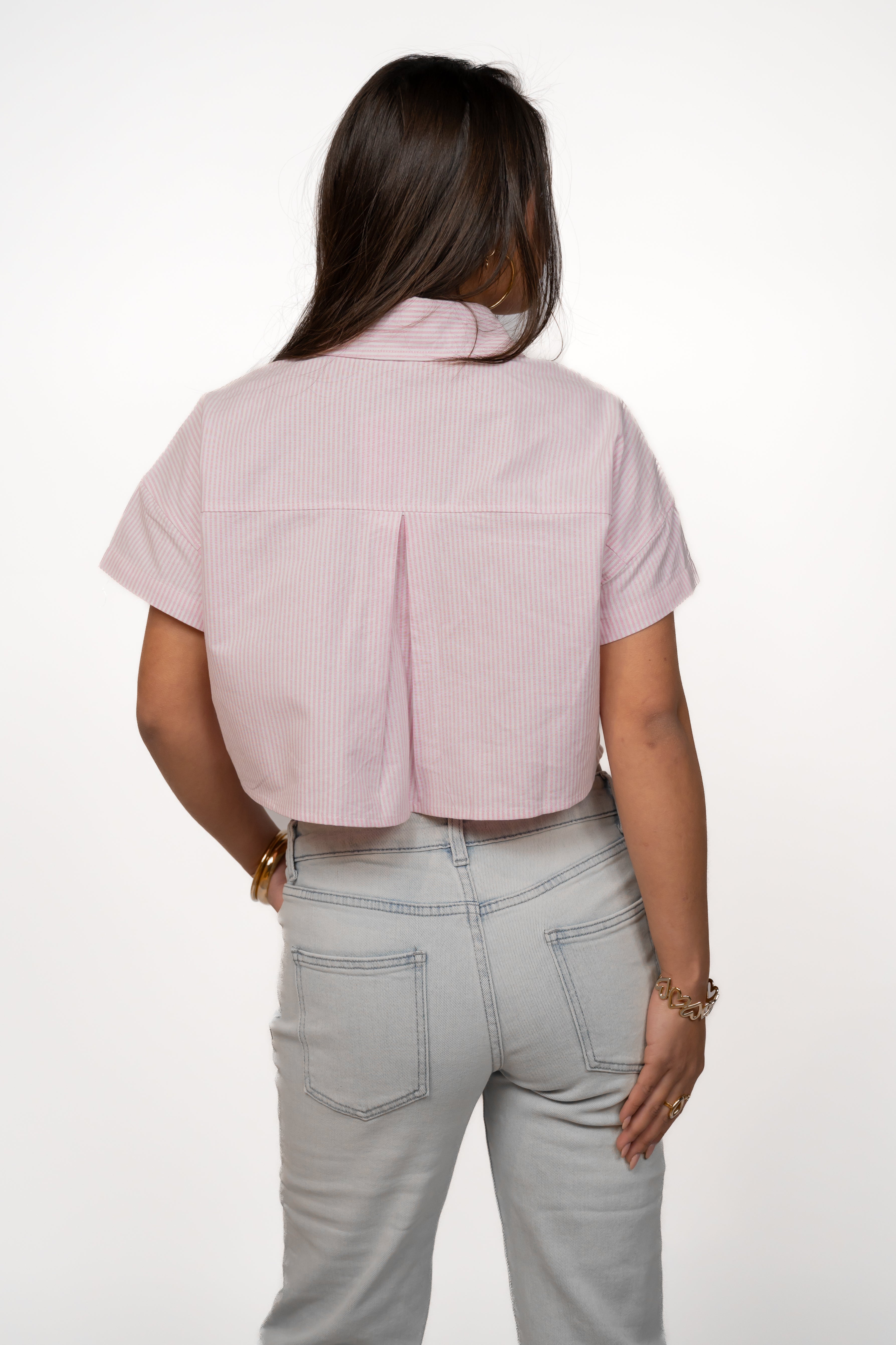Ce chemisier court tendance à rayures est le complément parfait à votre garde-robe d'automne. Disponible dans de nombreuses couleurs différentes. Combinez-le avec votre jean taille haute préféré ou un cardigan chaud pour un look automnal élégant.